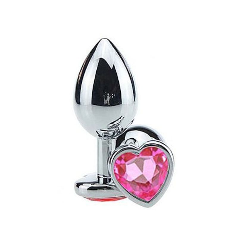 Plug anal de luxo em aço inoxidável possui forma cônica e um detalhe extremamente lindo de pedra lapidada em formato de coração na sua base.